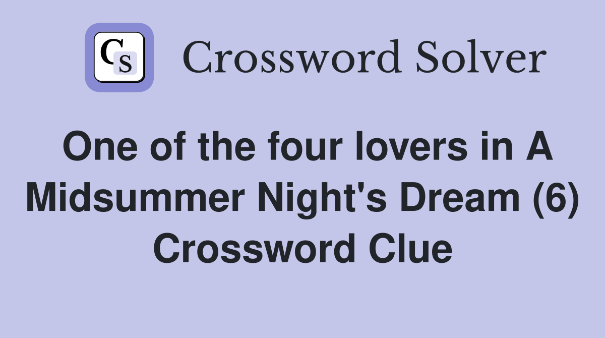 One of the four lovers in A Midsummer Night s Dream (6) Crossword