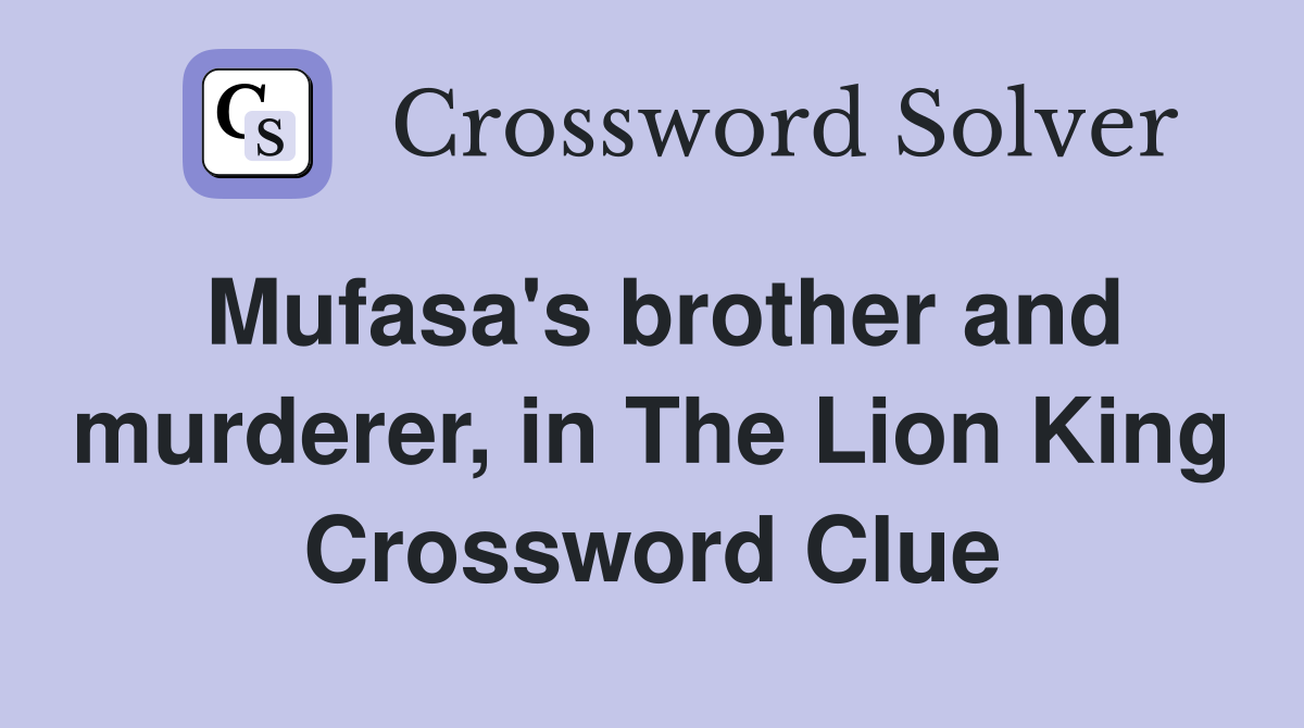 Mufasa s brother and murderer in The Lion King Crossword Clue