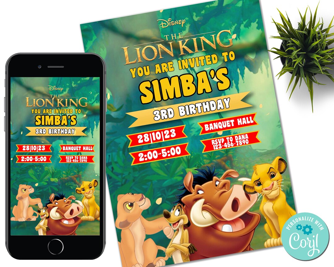 Digital Lion King Invitation Edit Online Instant Download