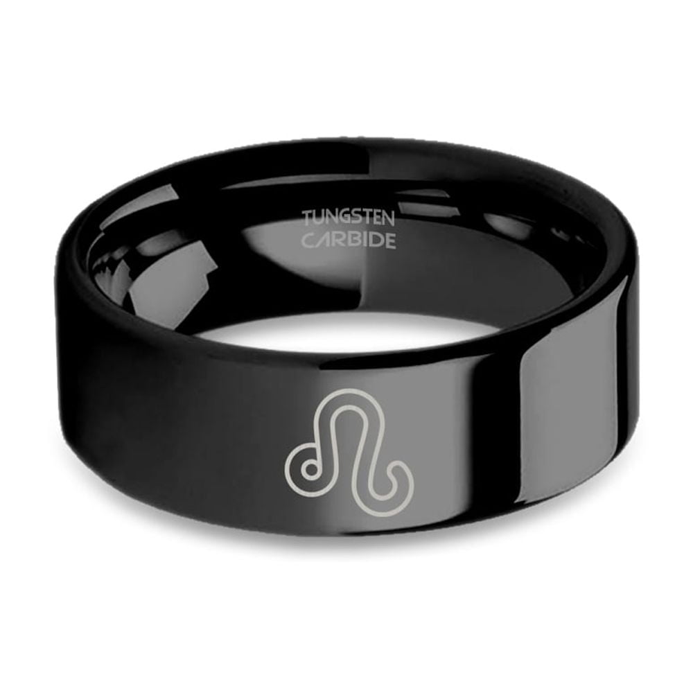 Horoscope Leo Lion Sign Laser Engraved Black Tungsten Ring 8mm Size