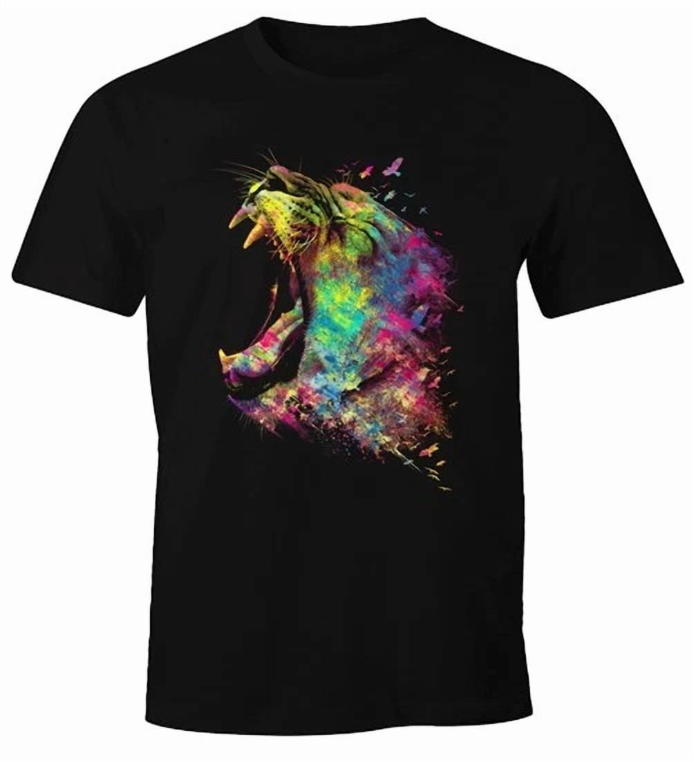 Herren T Shirt Screaming Lion Natur Farben Bunt Colors Moonworks