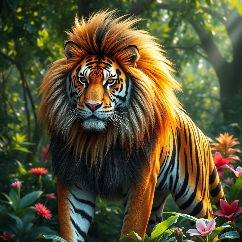 Majestic Lion Tiger Hybrid in Serene Jungle AI Art Generator Easy