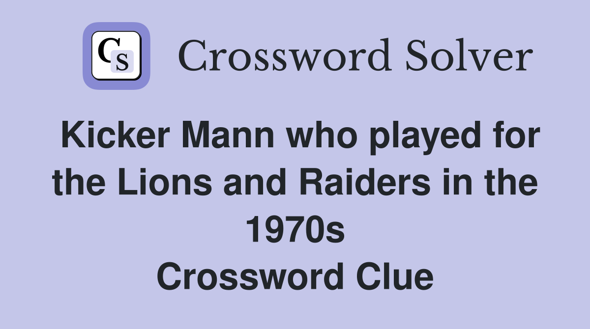 Kicker Mann who played for the Lions and Raiders in the 1970s
