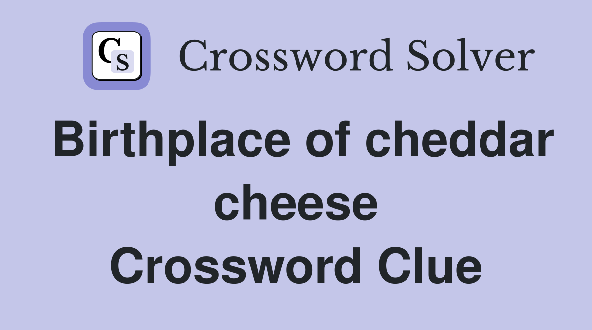 Birthplace of cheddar cheese Crossword Clue Answers Crossword Solver