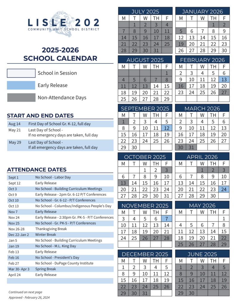 LISLE DISTRICT 202 CALENDAR 25 26 PDF revised EduCounty