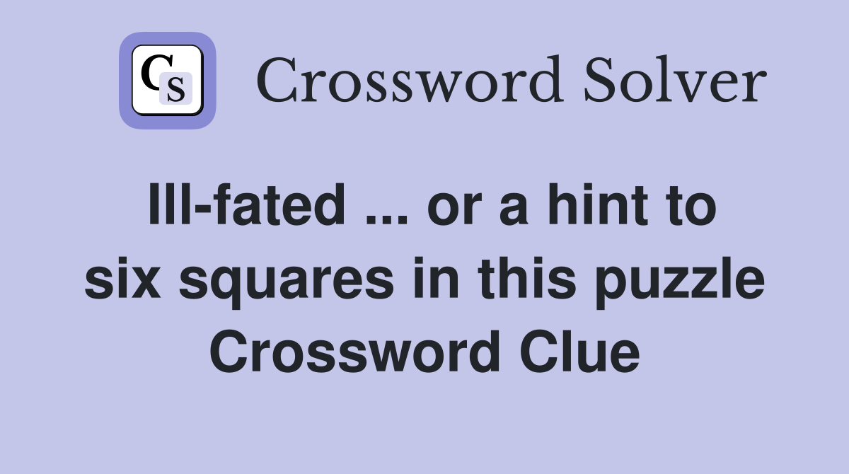 Ill fated or a hint to six squares in this puzzle Crossword Clue