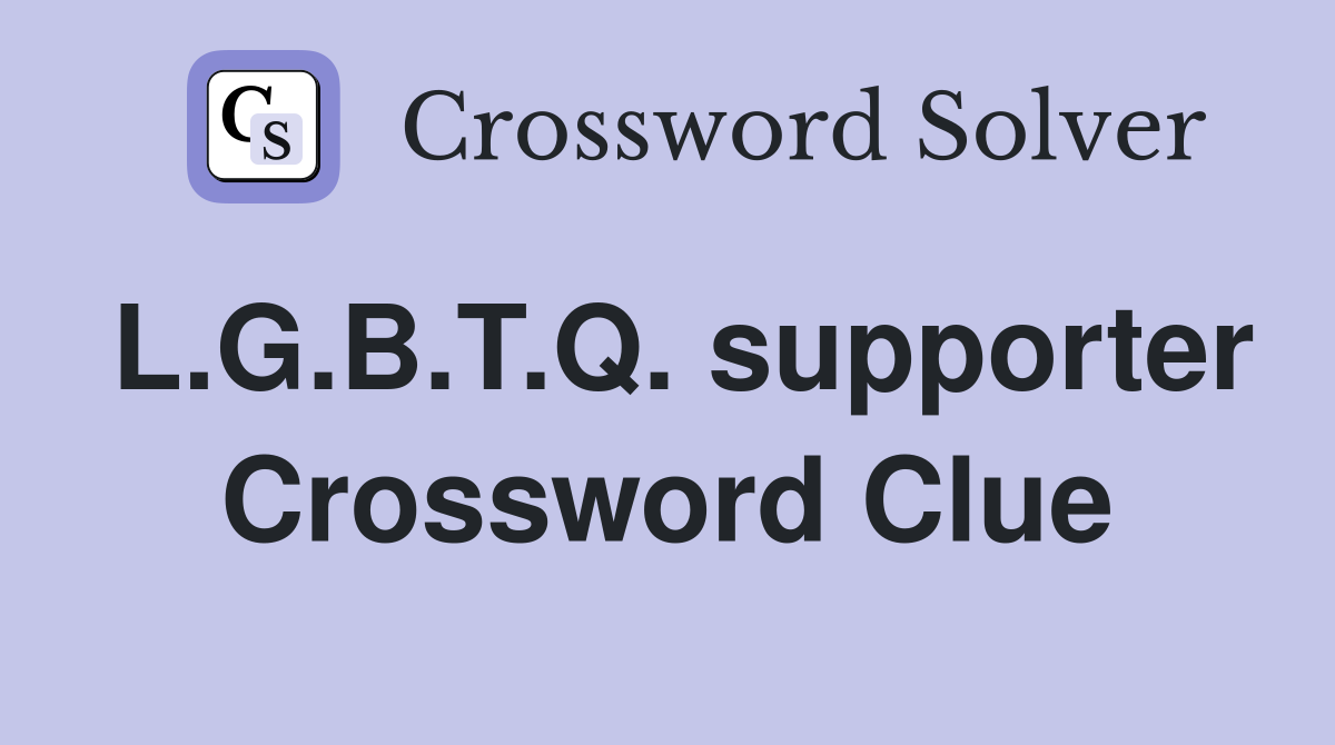 L G B T Q supporter Crossword Clue Answers Crossword Solver