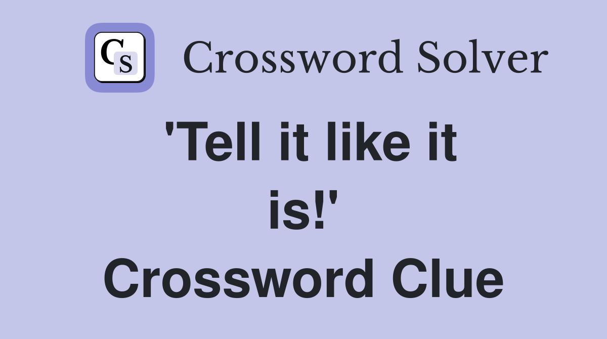 #39 Tell it like it is #39 Crossword Clue Answers Crossword Solver