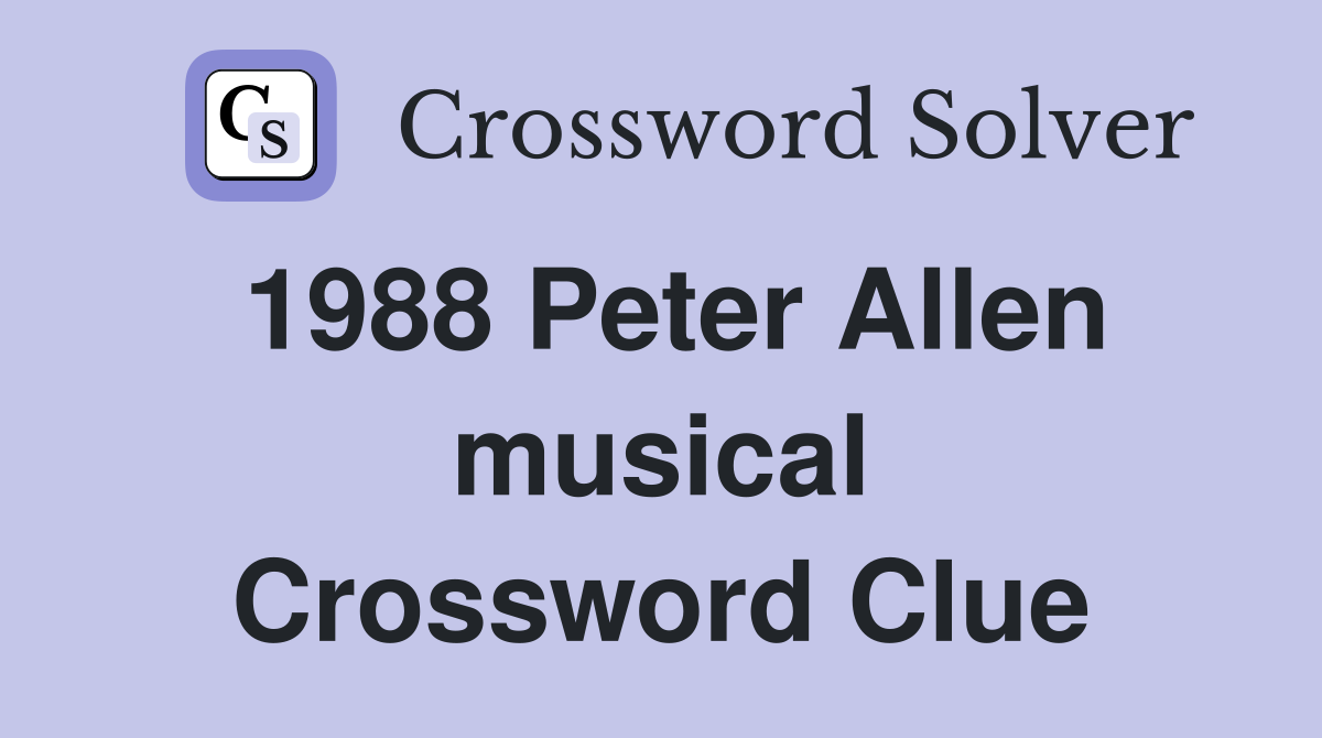 1988 Peter Allen musical Crossword Clue Answers Crossword Solver