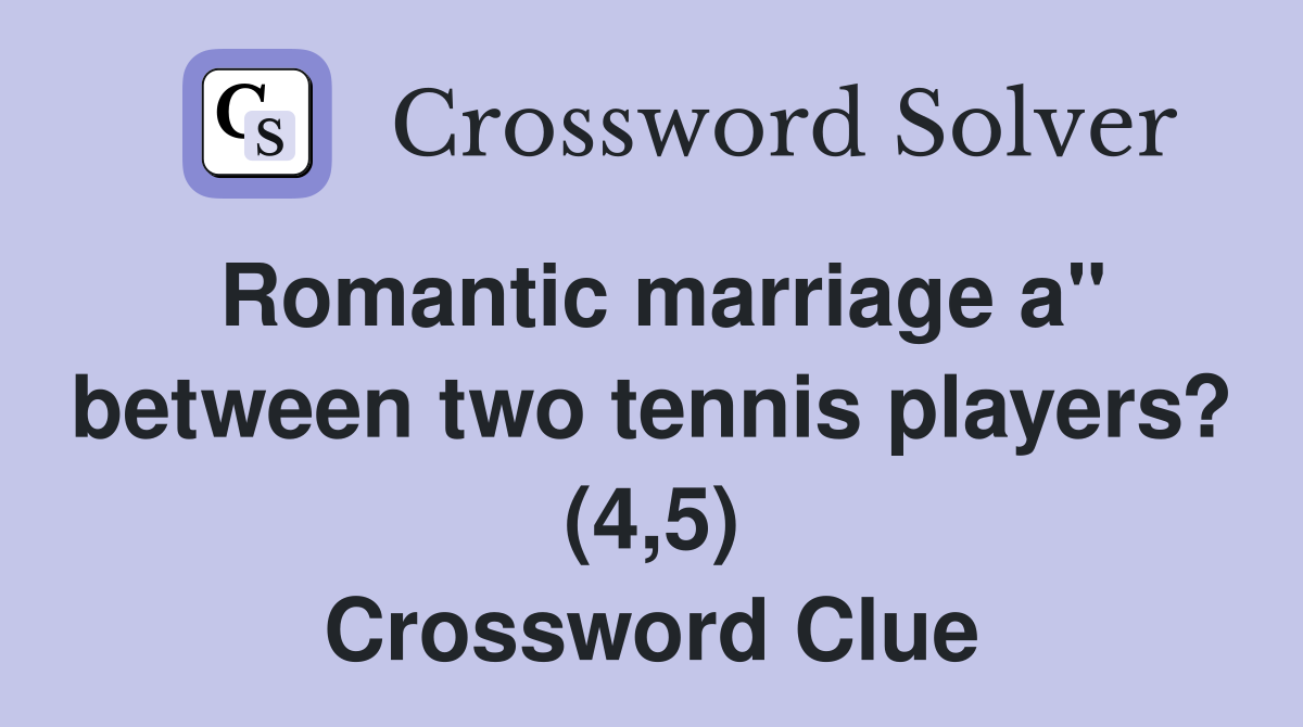 Romantic marriage a quot between two tennis players? (4 5) Crossword Clue