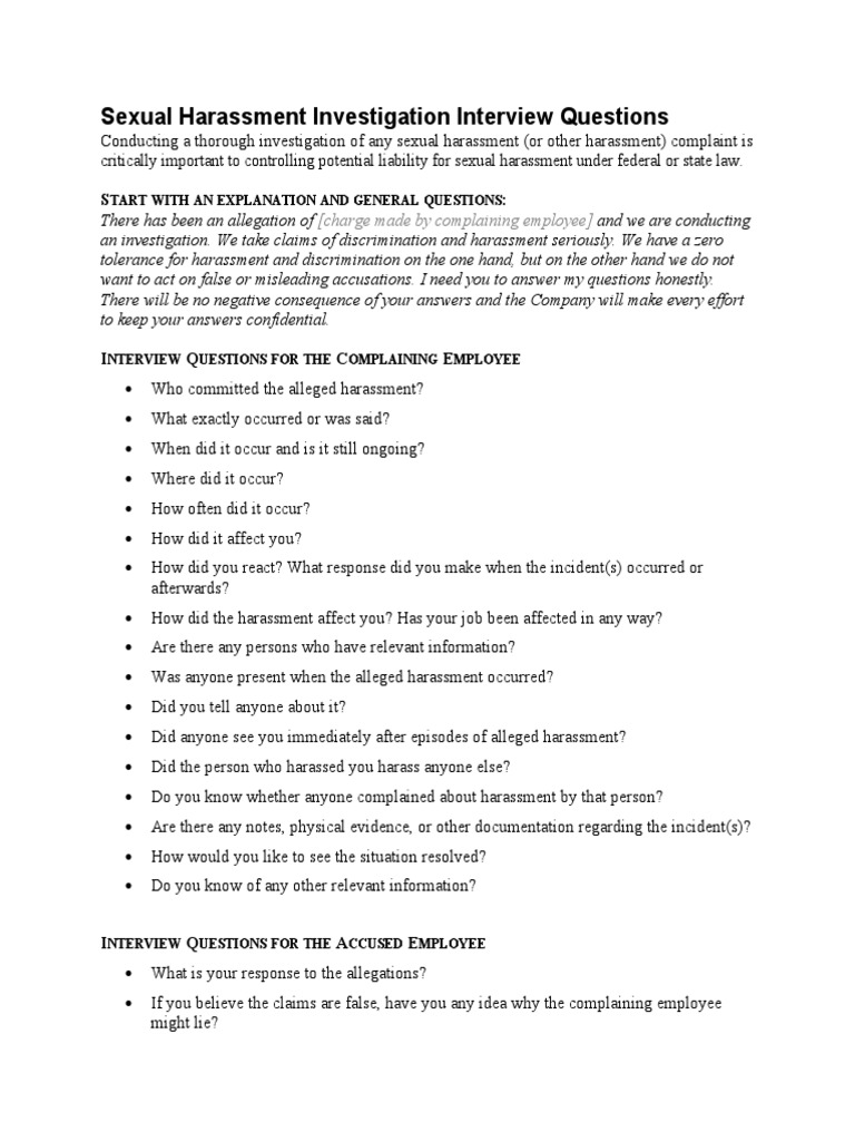 Checklist of Questions To Ask Potential Witnesses PDF Sexual