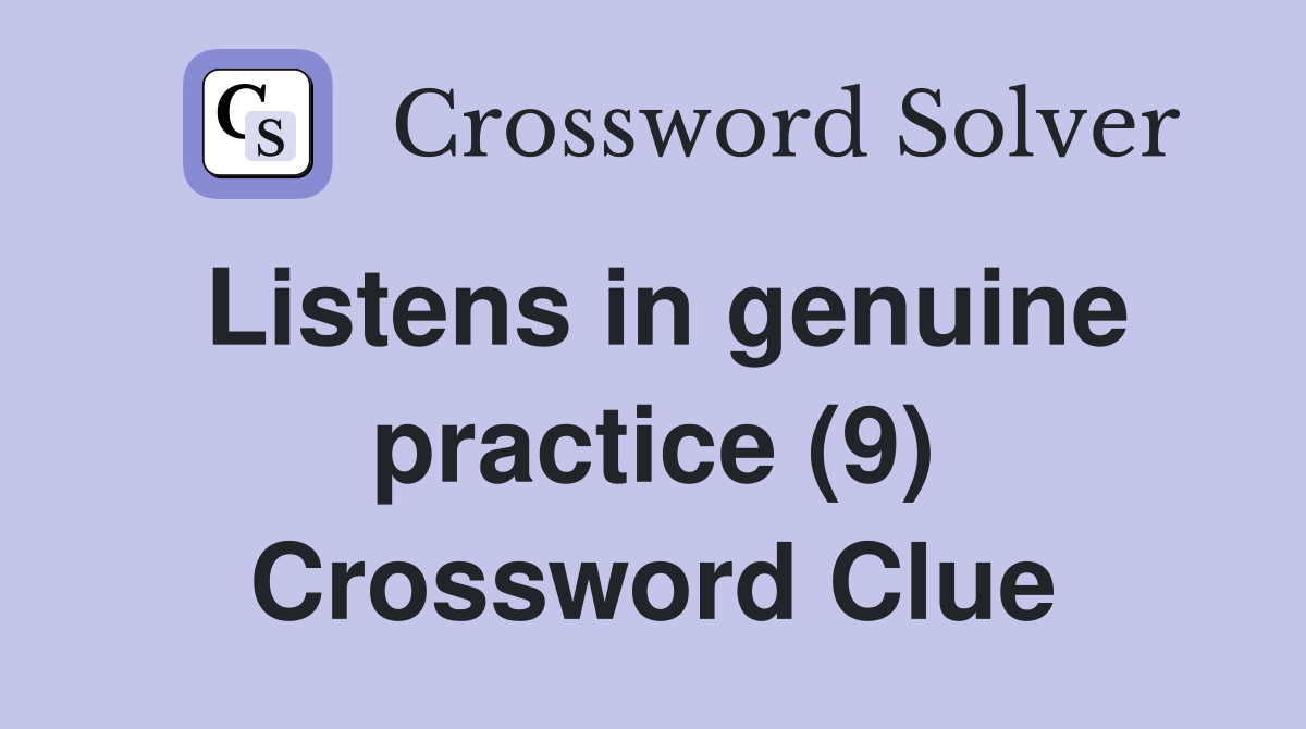 Listens in genuine practice (9) Crossword Clue Answers Crossword Solver