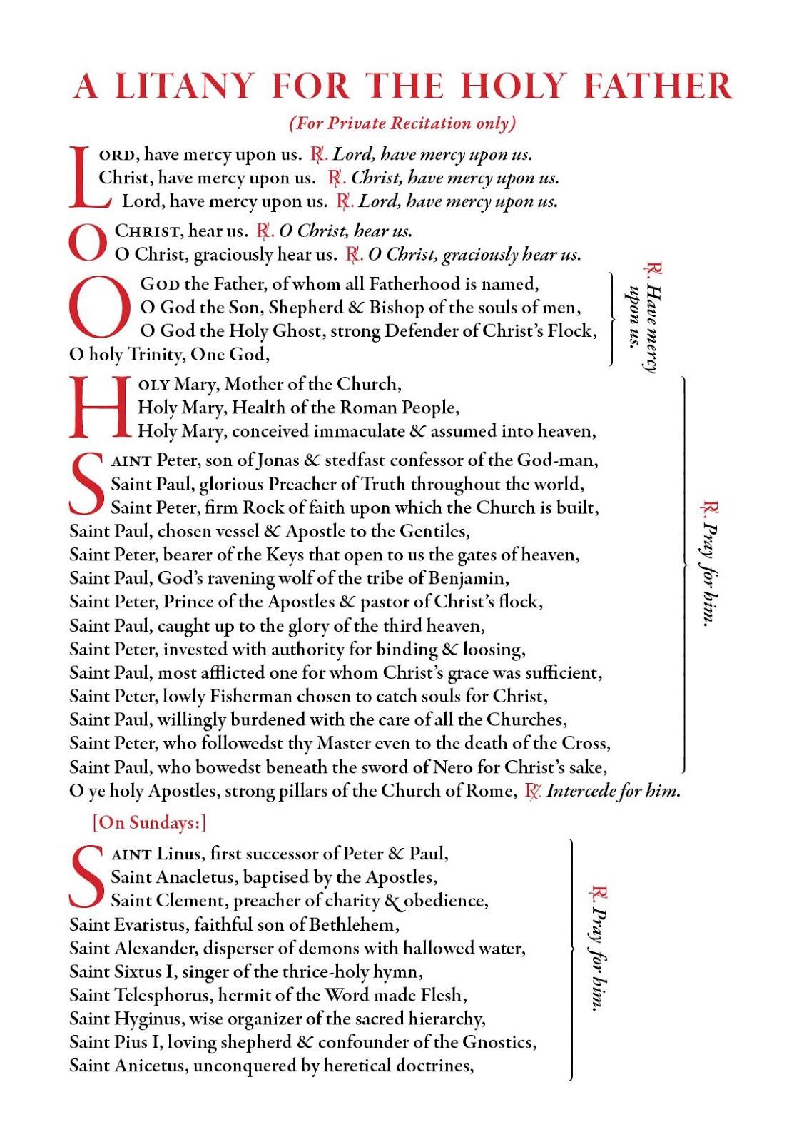 New Liturgical Movement: A Litany for the Holy Father