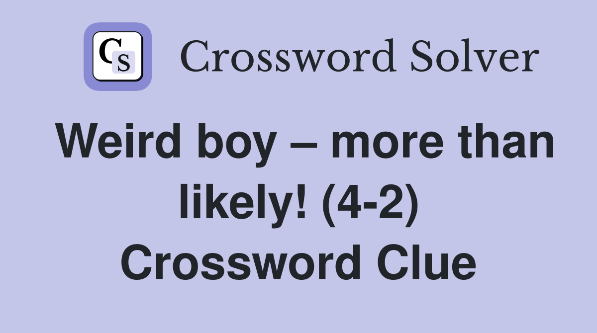 Weird boy more than likely (4 2) Crossword Clue Answers