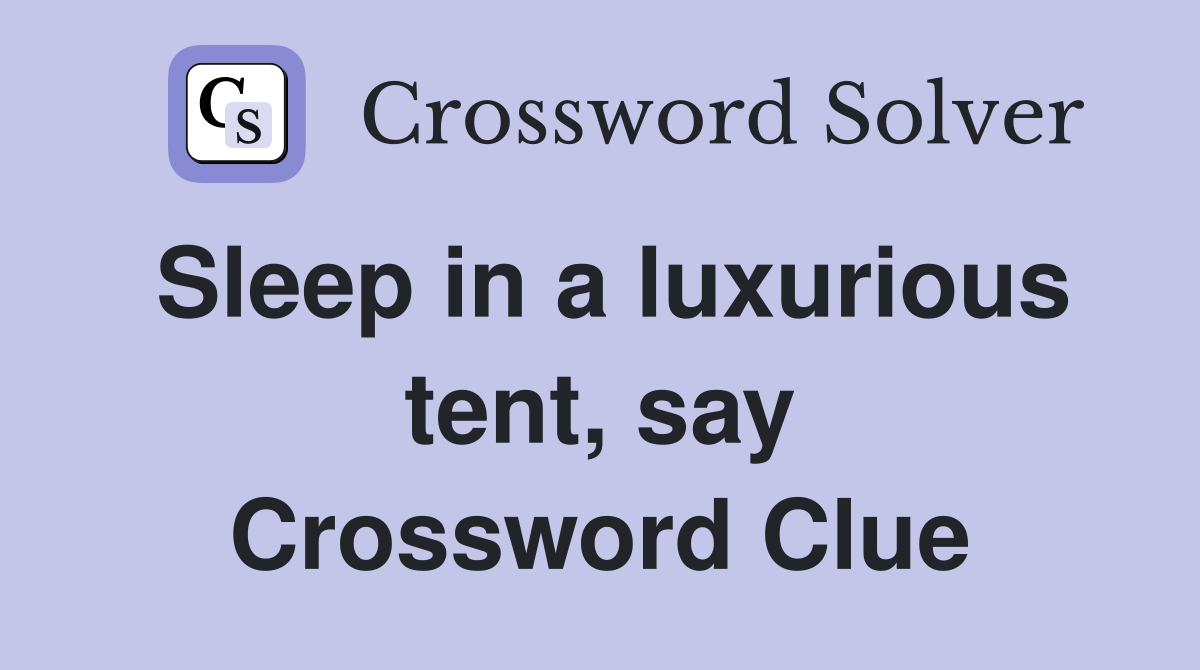 Sleep in a luxurious tent say Crossword Clue Answers Crossword Solver