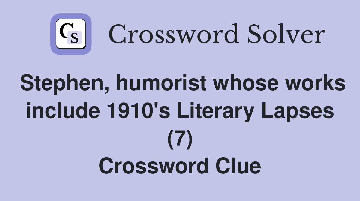 Stephen humorist whose works include 1910 #39 s Literary Lapses (7