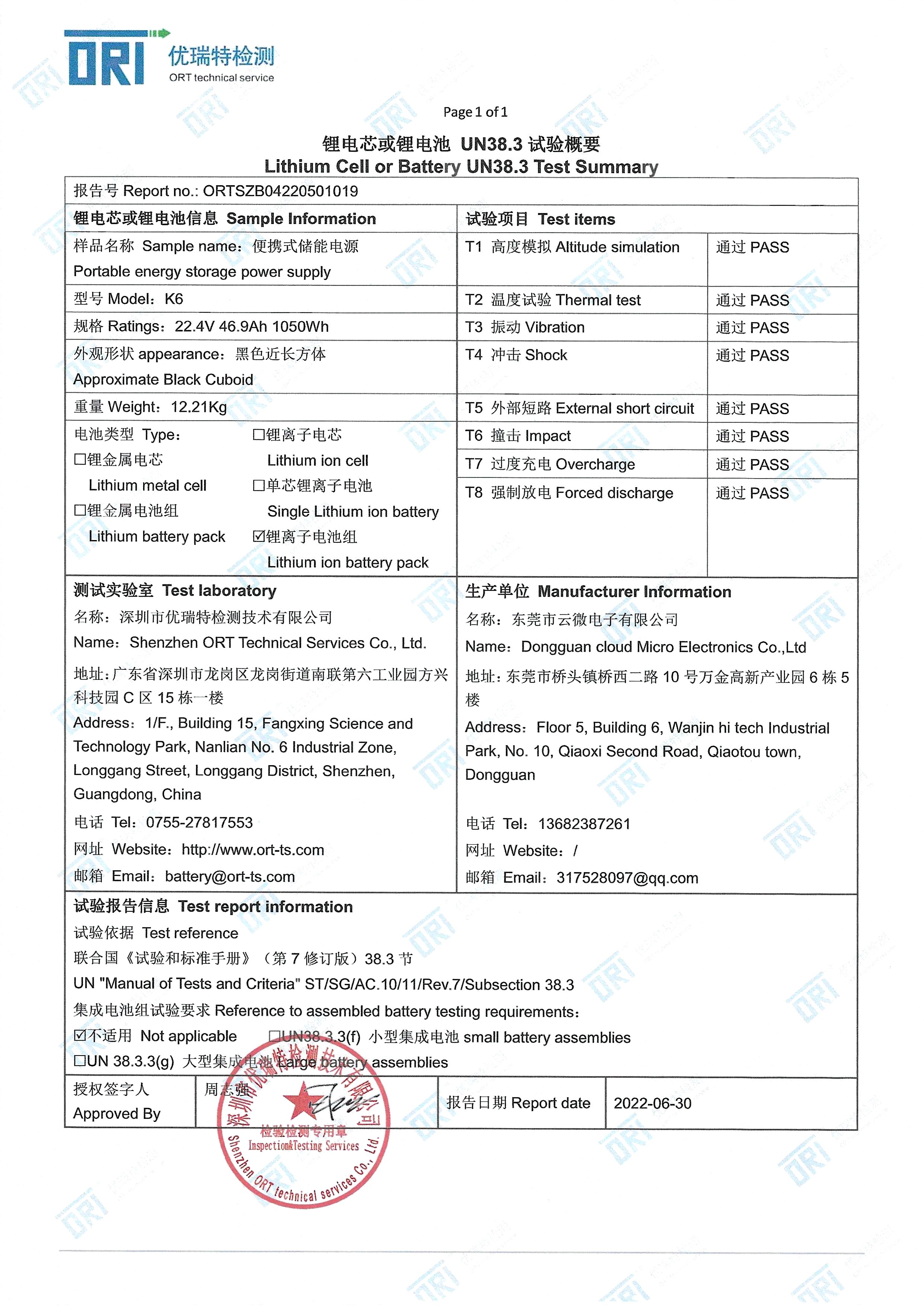 Battery Certification Ufine Battery Official