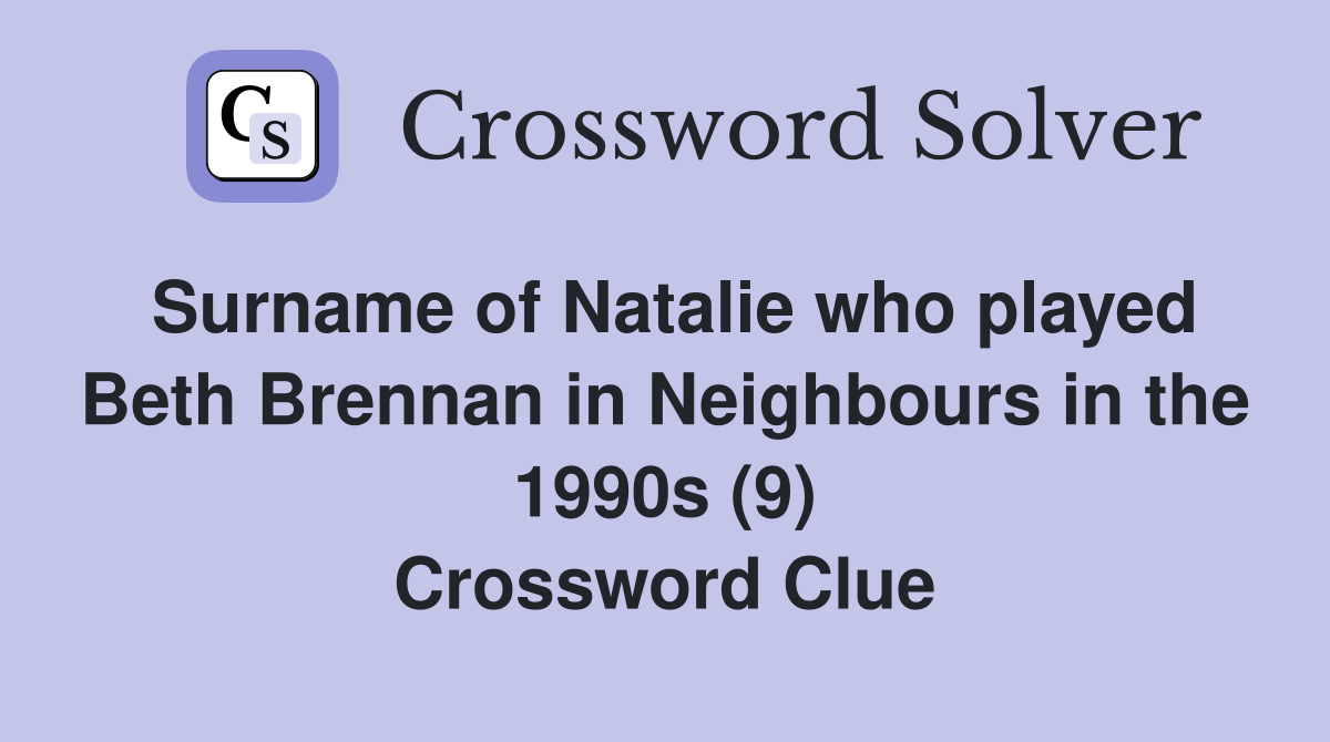 Surname of Natalie who played Beth Brennan in Neighbours in the 1990s