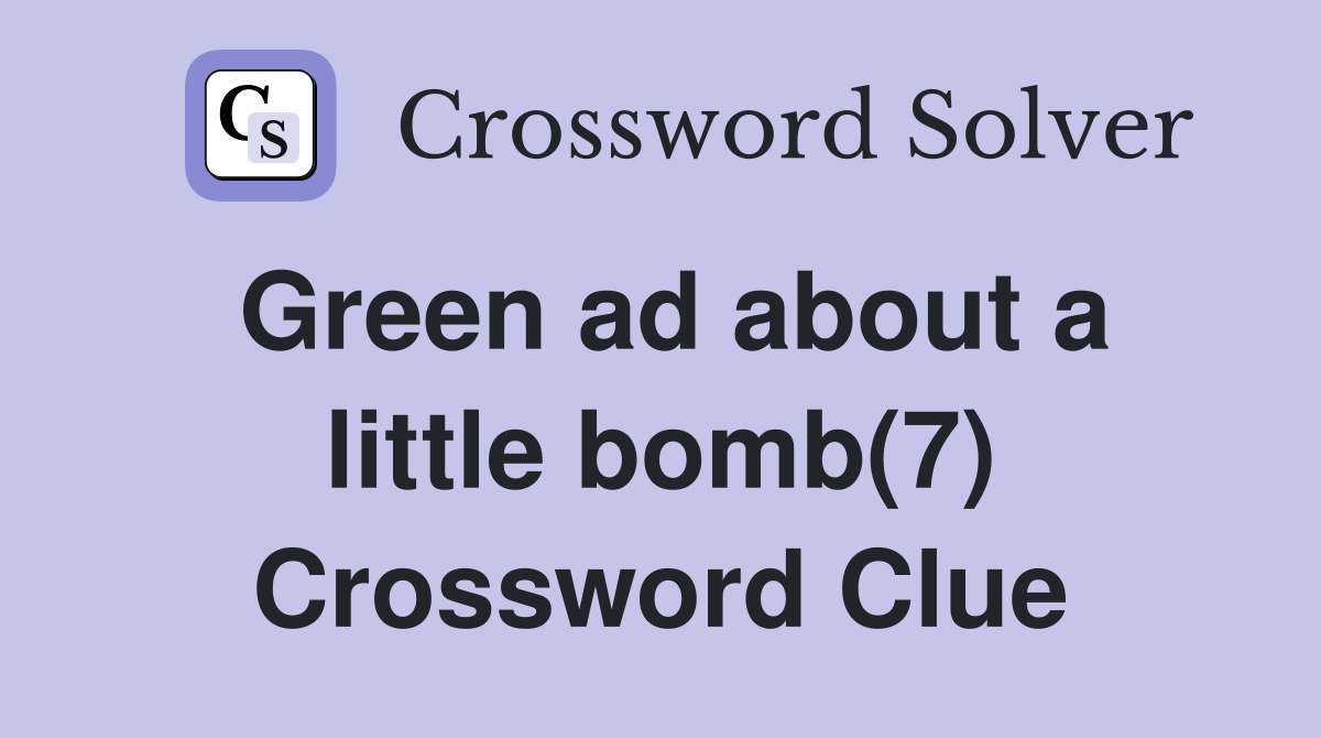 Green ad about a little bomb(7) Crossword Clue Answers Crossword Solver
