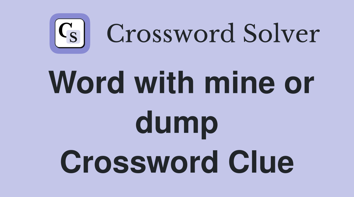Word with mine or dump Crossword Clue Answers Crossword Solver