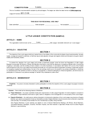 Fillable Online Constitution (Sample) Little League Baseball Fax