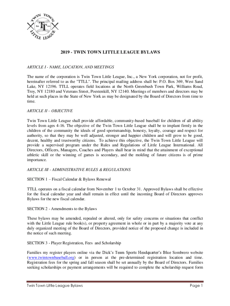 Little League Bylaws Template prntbl concejomunicipaldechinu gov co
