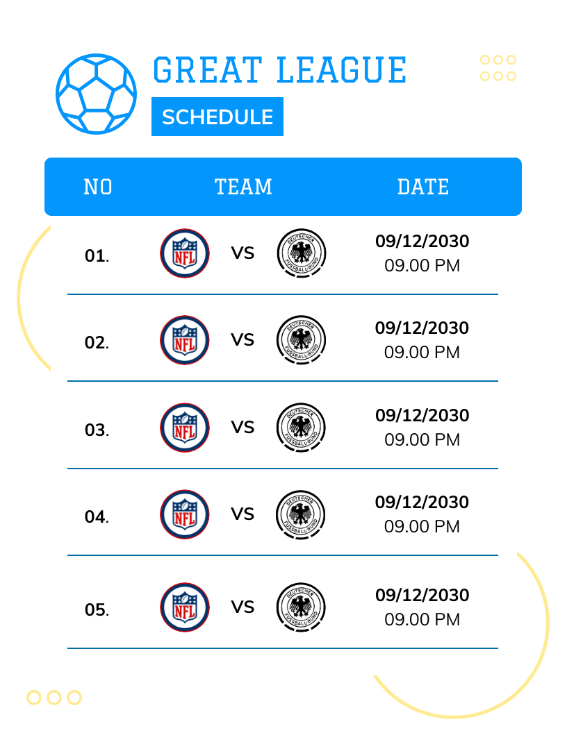 Baby Blue Minimalist Sport League Schedule Template Venngage