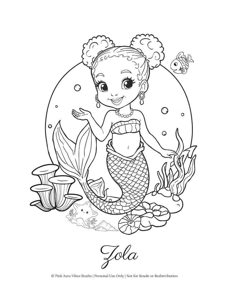 Little Puffs Mermaids Coloring Pages Afrocentric Mermaid Art Cute