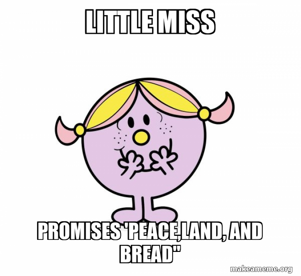 Little Miss promises #39 peace land and bread quot Little Miss Meme Generator