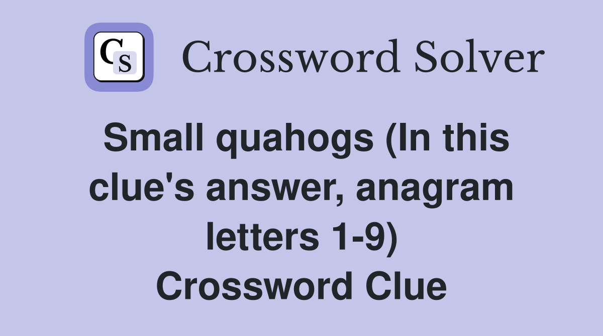 Small quahogs (In this clue #39 s answer anagram letters 1 9) Crossword