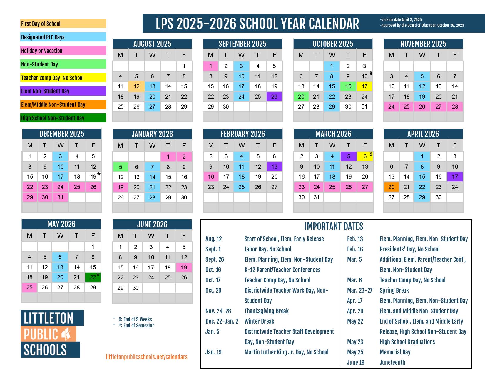 Littleton Public Schools Calendar 2025 2026 Holidays New School Calendar