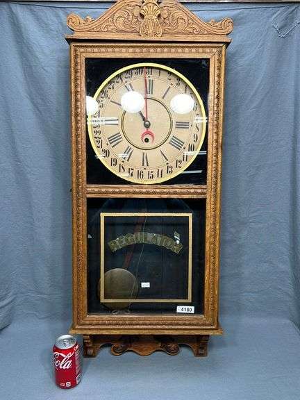 Antique oak calendar dial regulator clock Dixon #39 s Auction at Crumpton