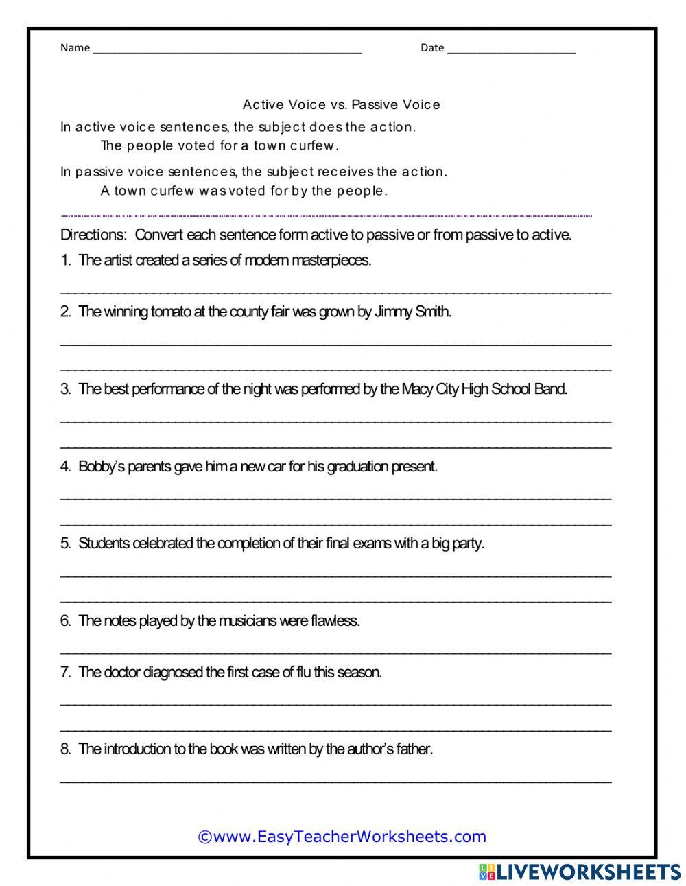 6th grade Passive voice worksheet Live Worksheets Worksheets Library