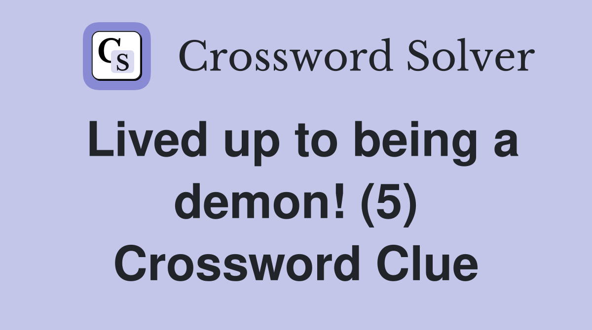 Lived up to being a demon (5) Crossword Clue Answers Crossword Solver