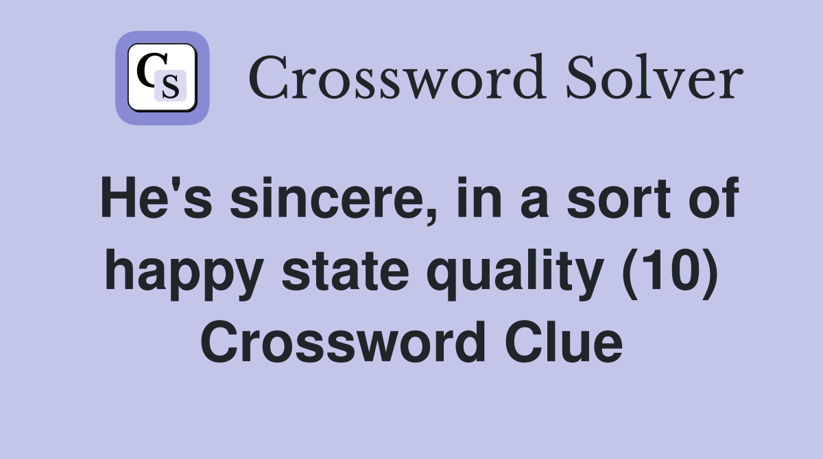 He #39 s sincere in a sort of happy state quality (10) Crossword Clue