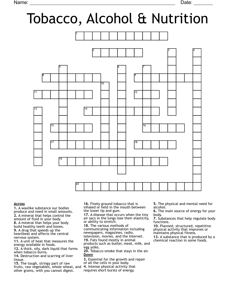 Tobacco Alcohol Nutrition Crossword WordMint