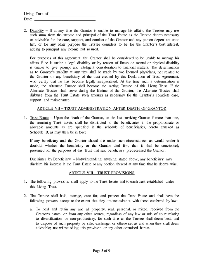 Revocable living trust (California) in Word and Pdf formats page 3 of 9
