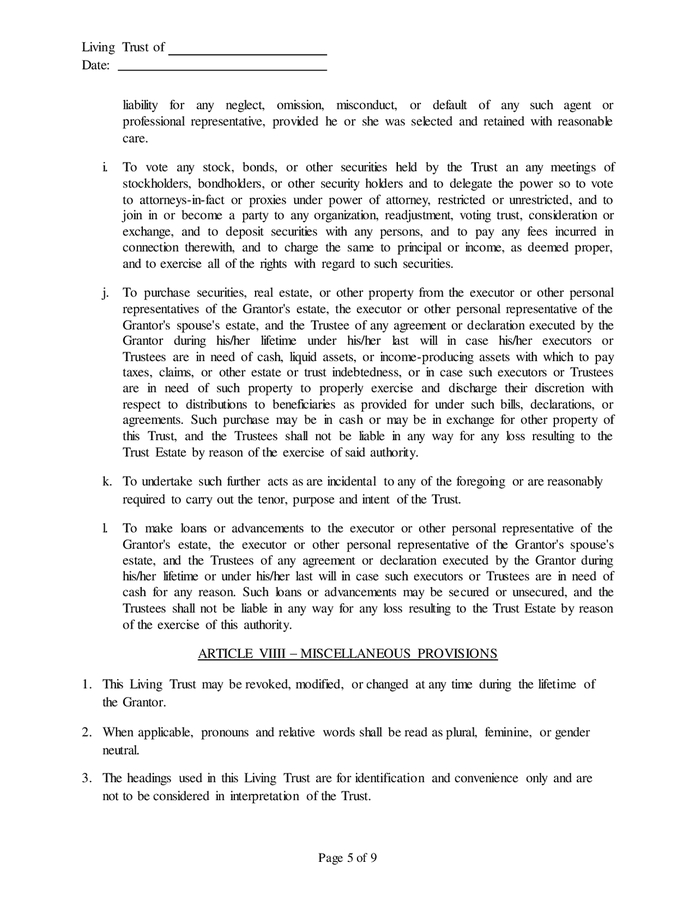 Revocable living trust (California) in Word and Pdf formats page 5 of 9