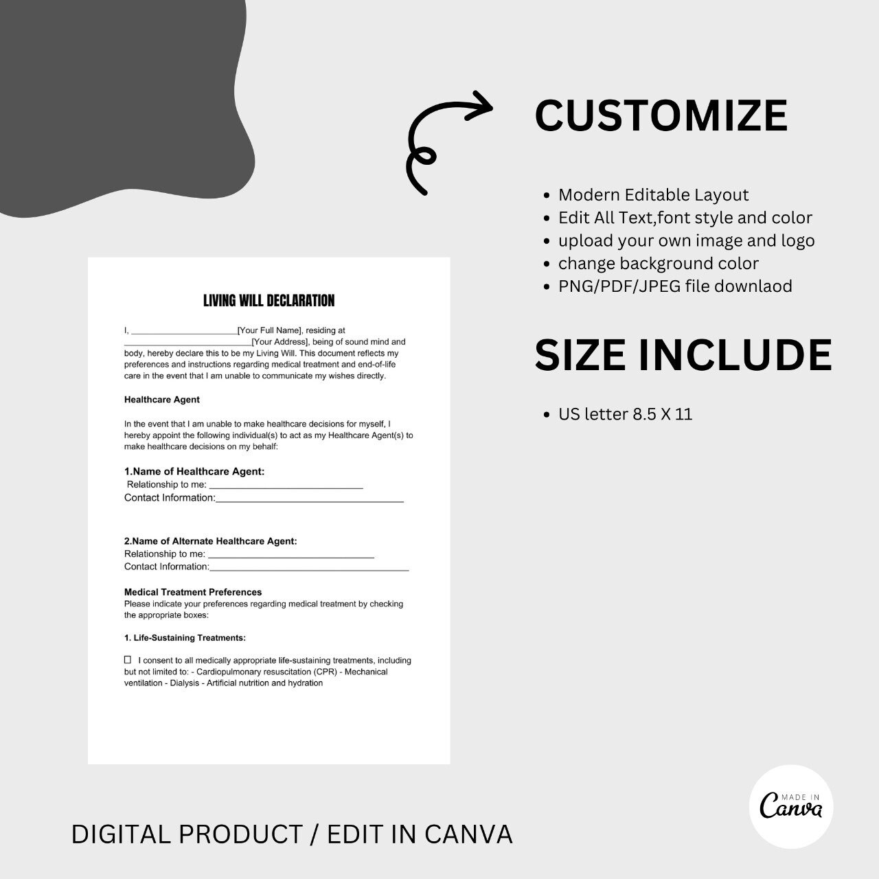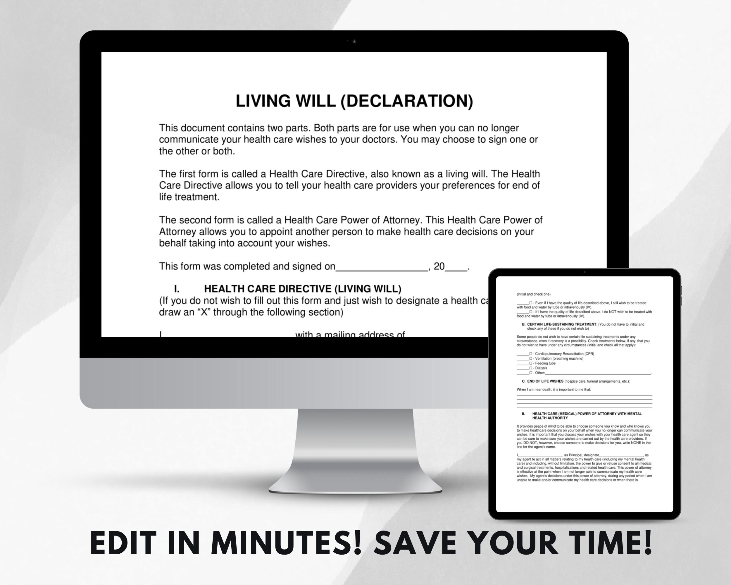 Living Will Template PRINTABLE Advance Care Directive Organ Donor