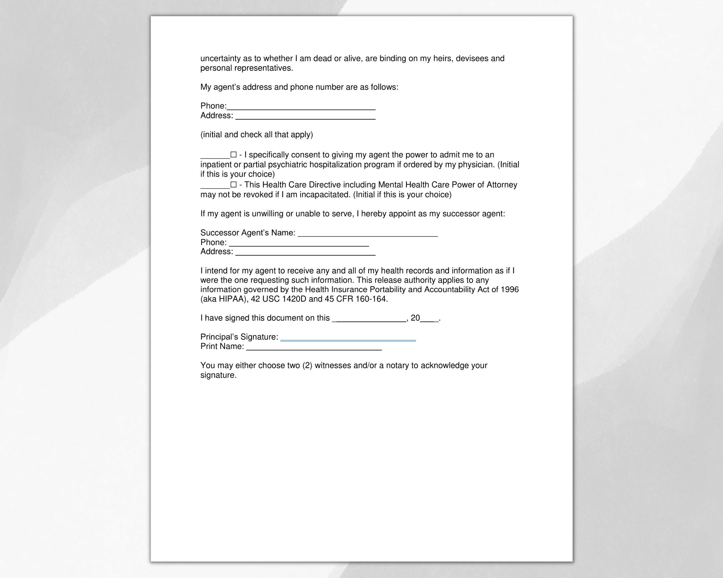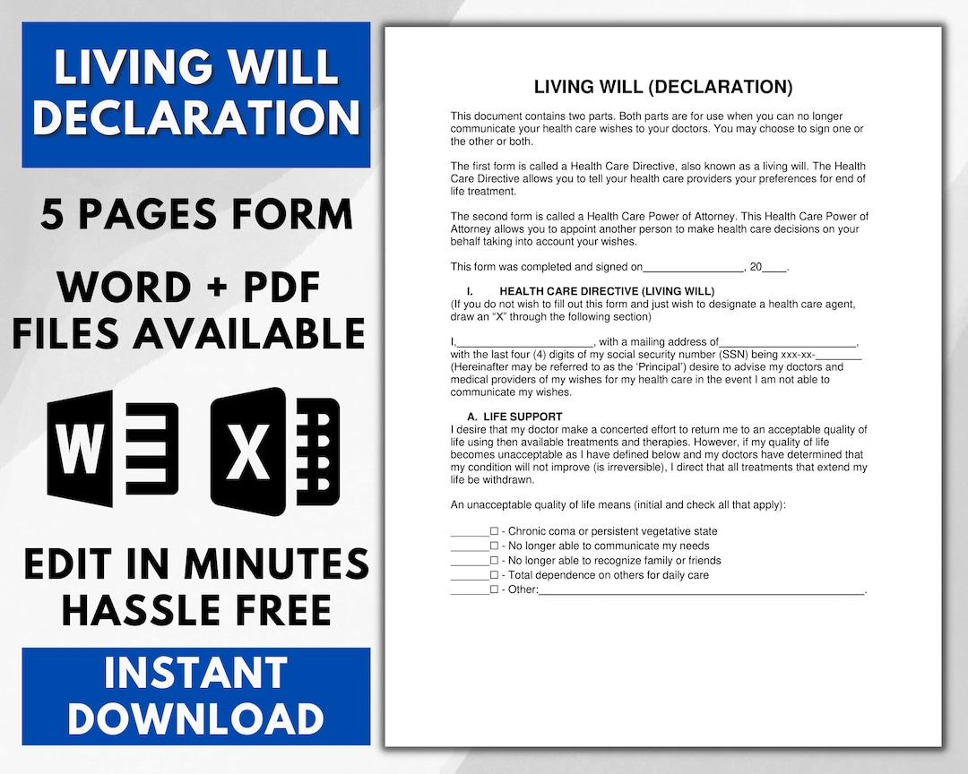 Free Living Will Form (Health Care Directive) PDF Word Worksheets