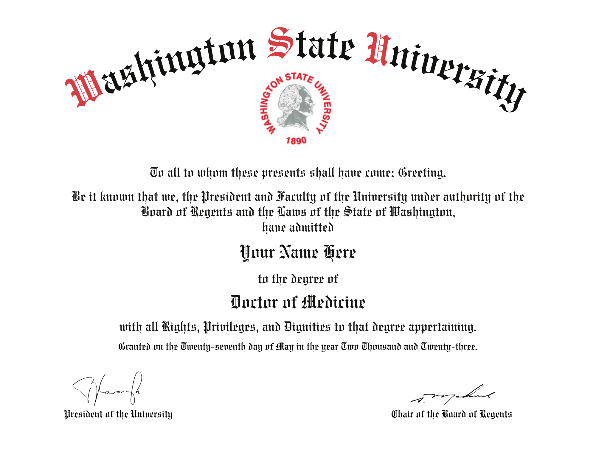 Washington State University Diploma Authentic fake university diploma