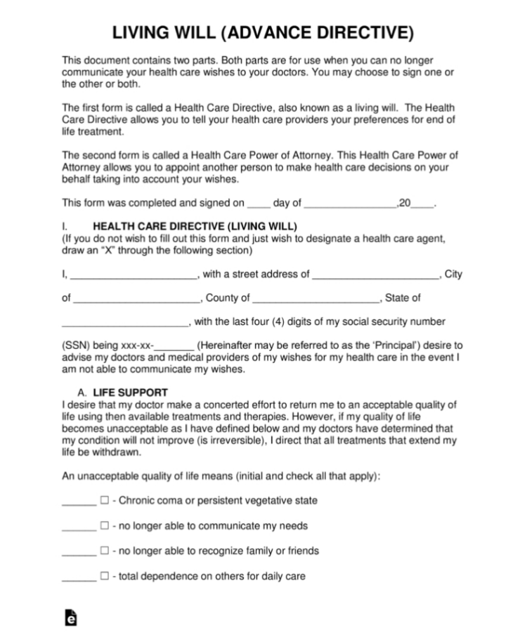 Easy Free Printable Living Will Template Forms (PDF) Printables for