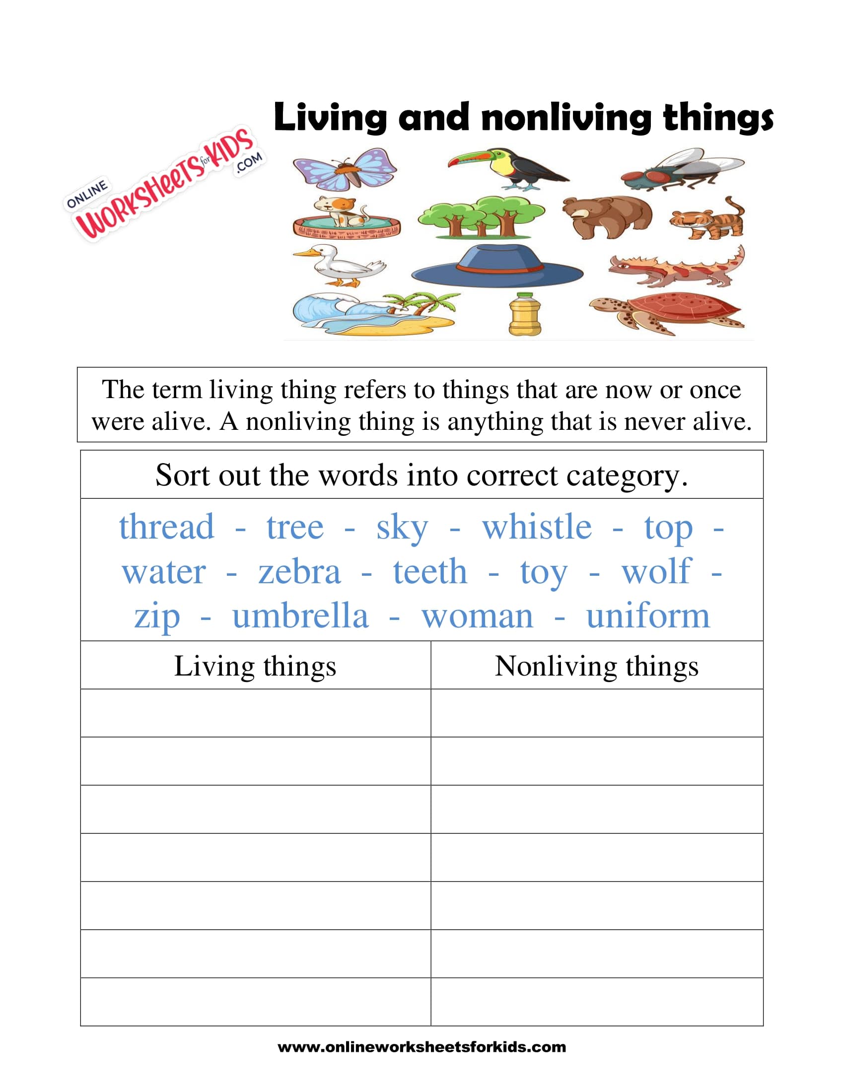 Five Characteristics Of Living And Non Living Things Free Worksheets