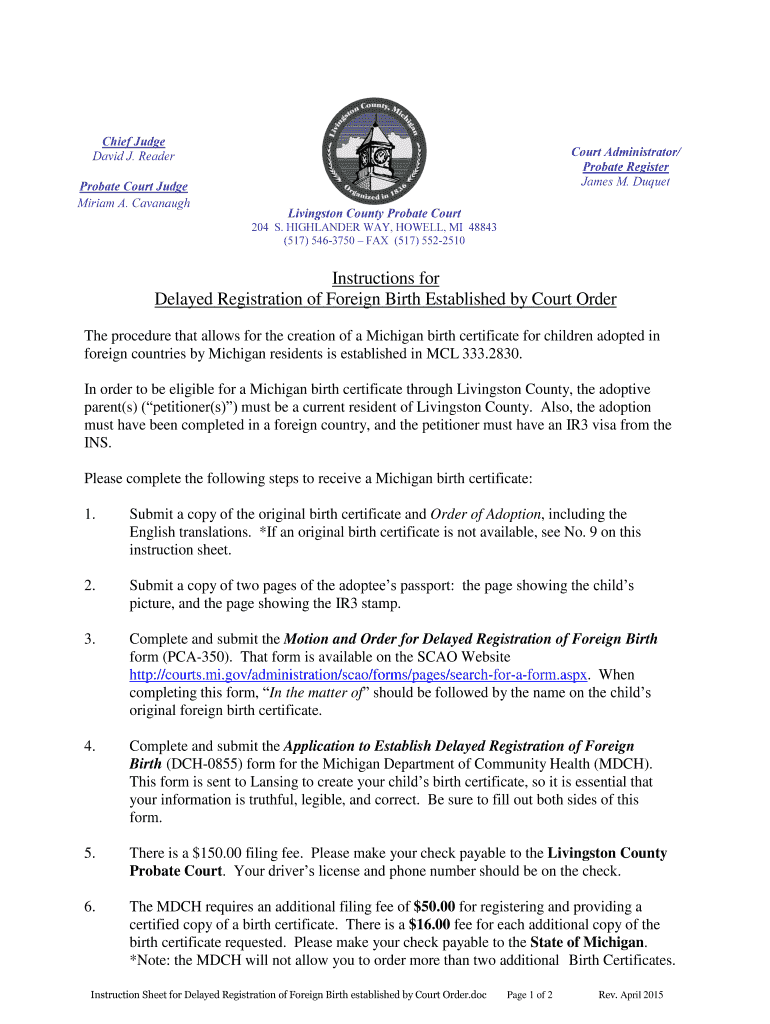 Livingston County Probate Court Court Process Forms