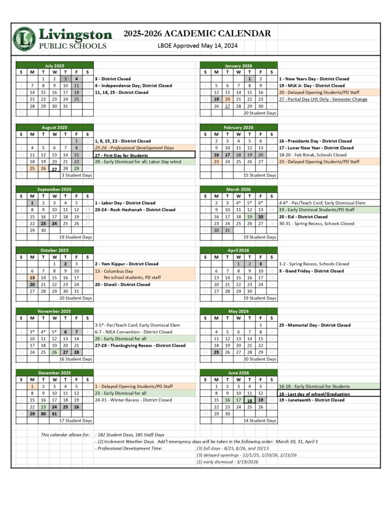 Livingston Public Schools Calendar
