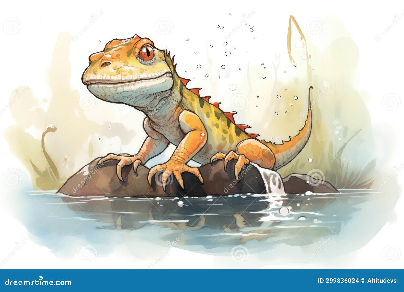 Lizard with Dewlap Extended at a Water Source Stock Photo Image of