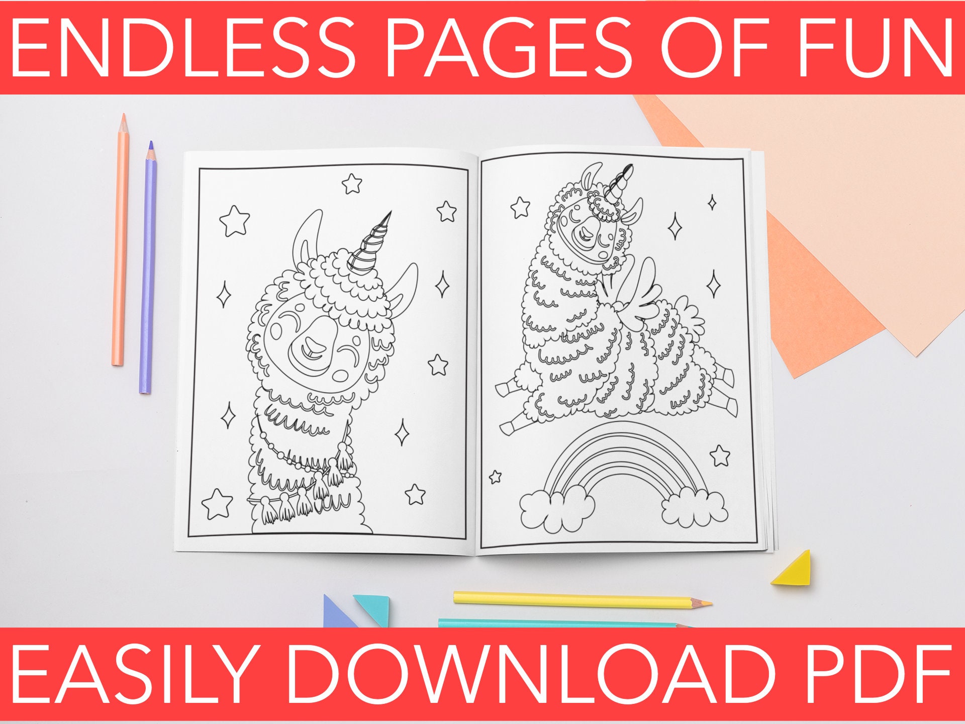 Printable Llama Coloring Pages EASILY DOWNLOAD PDF Etsy
