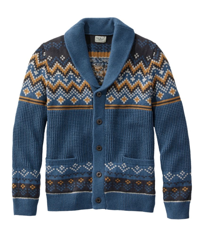 Men #39 s Organic Cotton Cardigan Waffle Sweater Fair Isle Sweaters at L
