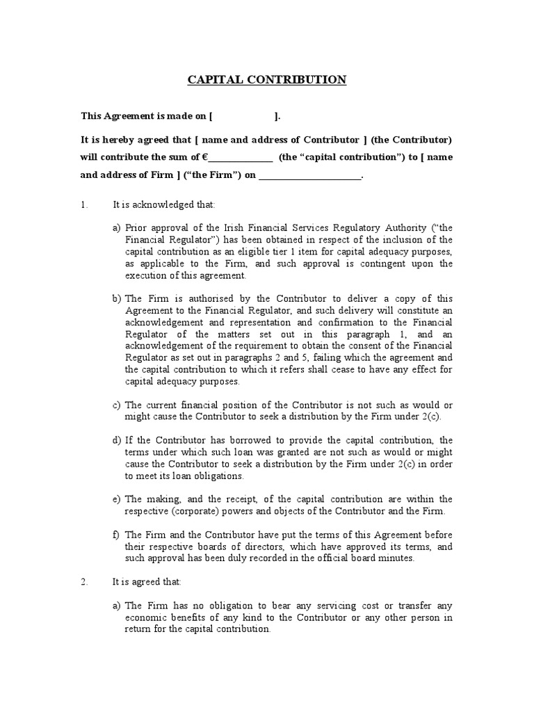 Capital Contribution Agreement Template