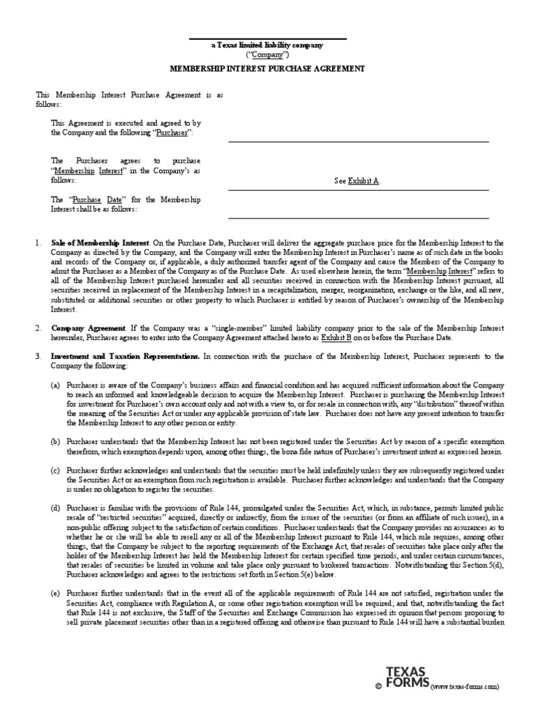 Llc Membership Purchase Agreement Template Texas PDF Template